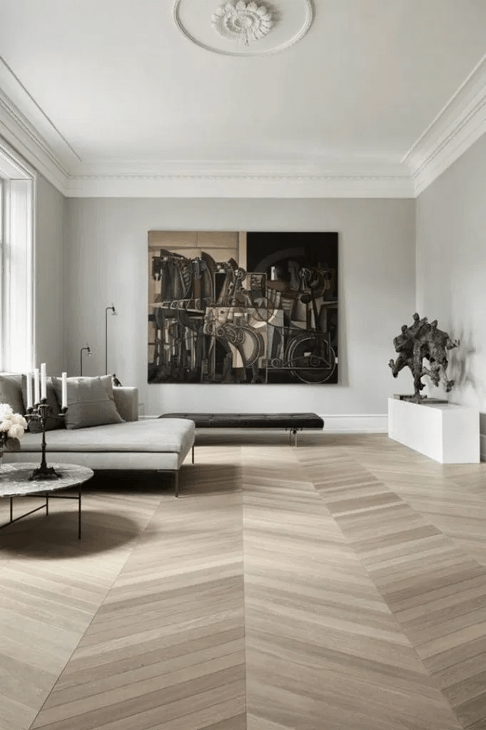 Pardoseala unui dormitor amenajat în stil vintage are neapărat nuanțe de alb și gri, care se îmbină cu celelalte elemente de mobilier din lemn deschis la culoare. Pentru ca întregul design să fie un vintage autentic trebuie să integreze elemente romantice și elegante din lemn.