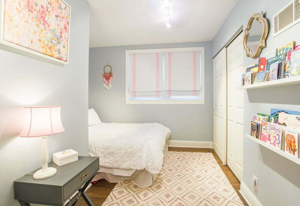 Dormitorul copilului trebuie să se remarce prin atmosfera relaxantă, ce poate fi conferită de paleta cromatică utilizată. Sunt preferate nuanțele pastelate, fine și piesele de mobilier mai puține pentru a lăsa spațiul aerisit. Joacă-te cu paleta cromatică și cu diferite imprimeuri și texturi pentru a crea un dormitor distractiv și viu.