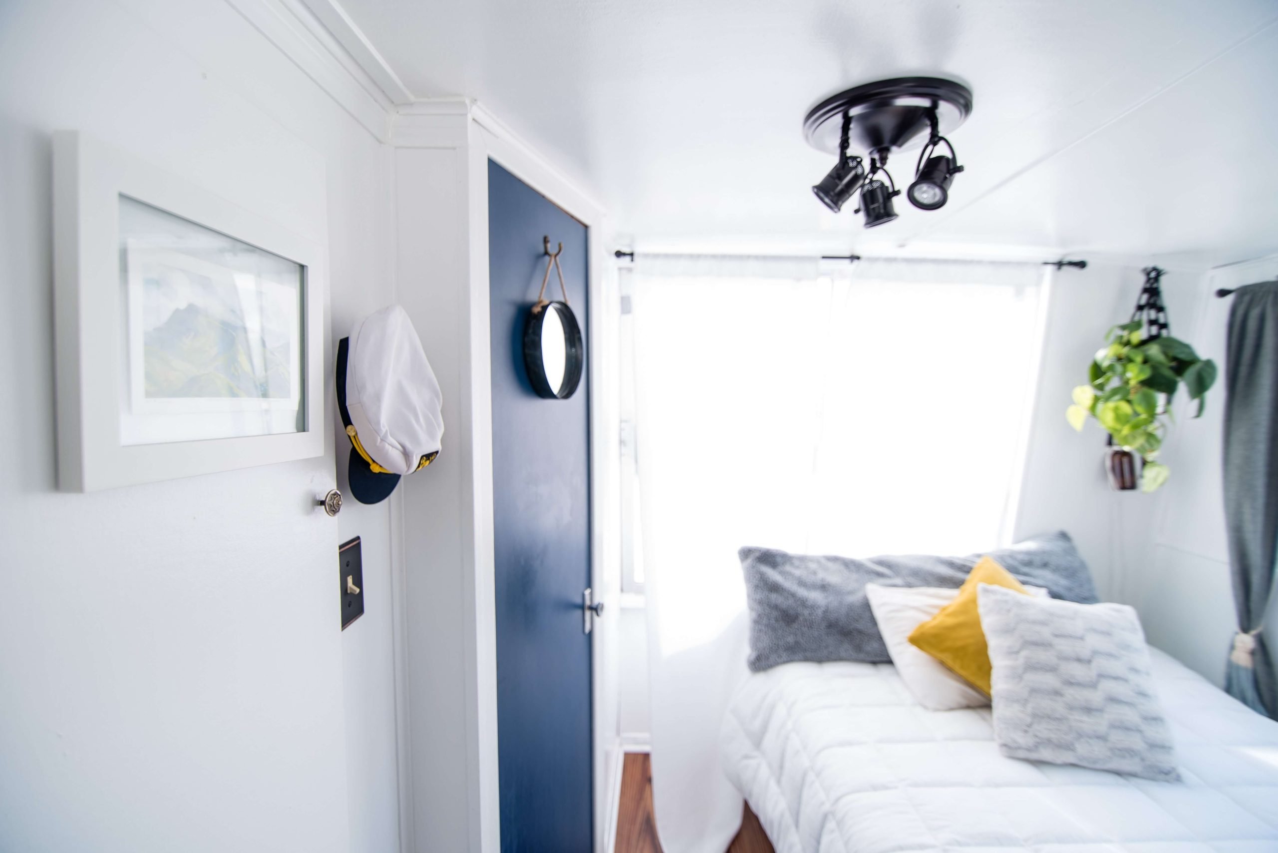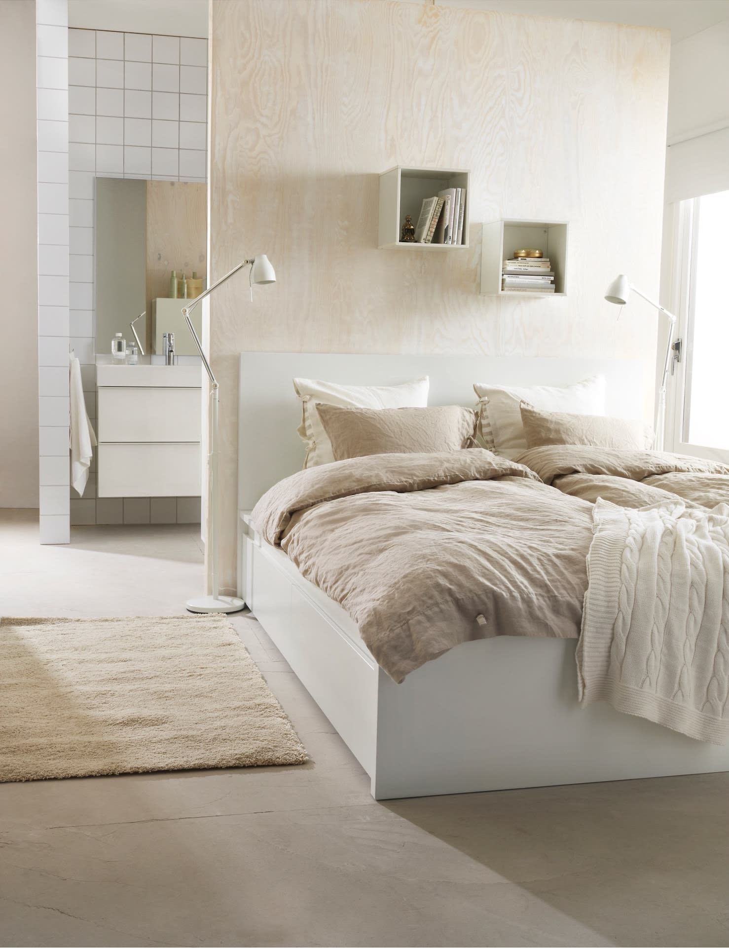 Folosește trucuri precum mobilierul suspendat pentru a te asigura că beneficiezi de toate spațiile de depozitare disponibile. Și aplicarea tapetului pe un singur perete sau zugrăvirea într-o altă culoare decât restul încăperii va conferi un efect de adâncime și spațiu dormitorului.