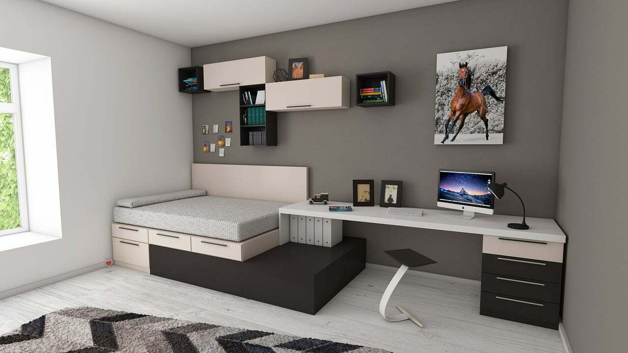 În privinţa mobilierului alege piese cu linii simple şi elemente care să se remarce prin funcţionalitate. Este evident faptul că un dormitor de tineret are nevoie de un birou de lucru pentru ca adolescentul să îşi desfăşoare activităţile, deci ai grijă să îl integrezi în amenajarea camerei.