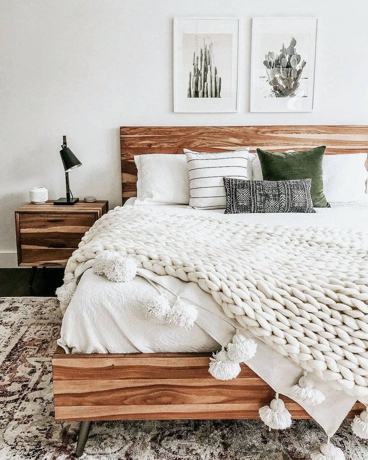 Elementele decorative integrează țesături geometrice neutre și uni, în timp ce accesoriile nu se regăsesc atât de mult în spațiile de depozitare. Alături de materiale naturale și pereți falși de lemn, amenajarea dormitorului tău poate căpăta un aer modern.