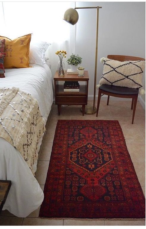 Cum mobilierul va ocupa deja o bună parte din suprafața apartamentului de 12 mp, covorul ar trebui să fie unul de mici dimensiuni, dintr-o textură subțire, pe care să-l așezi în fața patului. Ai grijă ca acesta să fie într-o culoare diferită de cea a pardoselii pentru a crea un efect aerisit și ordonat.