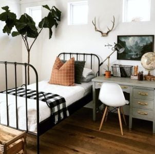 Asortează-l cu restul camerei prin adăugarea de elemente naturale precum mobilierul din lemn sau plante decorative pentru a obține un spațiu primitor și relaxant.