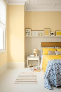 O culoare ce emană optimism, bucurie și multă energie poate fi utilizată în amenajarea unui dormitor în accente ușoare. În funcție de nuanța de galben pe care o alegi vei putea opta pentru mai multe sau mai puține elemente în această culoare, pe care să le combini cu tonuri neutre.