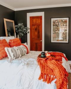 Un dormitor amenajat în culoarea portocaliu este unul vibrant, energic și cald. Pentru un efect vizual de excepție îl poți alătura unei nuanțe de gri, poți așeza alături mai multe tonuri calde de roșu, galben sau bej ori poți crea un accent inedit prin combinația cu negru și alb.