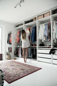 Dulapul pentru haine este următorul element de mobilier necesar într-un dormitor. Acesta trebuie poziționat pe peretele ce nu dispune de utilități, nu în zona ferestrei, a ușii sau a nișei. Înălțimea dulapului de haine este dictată de înălțimea camerei, dispunând de picioare de susținere și de spațiu între el și perete pentru o bună aerisire. Pentru un efect vizual de mărire a spațiului, optează pentru uși cu oglindă sau chiar un cadru deschis, cu umerașe și sertare la vedere. Un dressing foarte mare, din lemn masiv va încărca spațiul existent, deci ai grijă să nu alegi o astfel de variantă dacă amenajezi un dormitor mic.