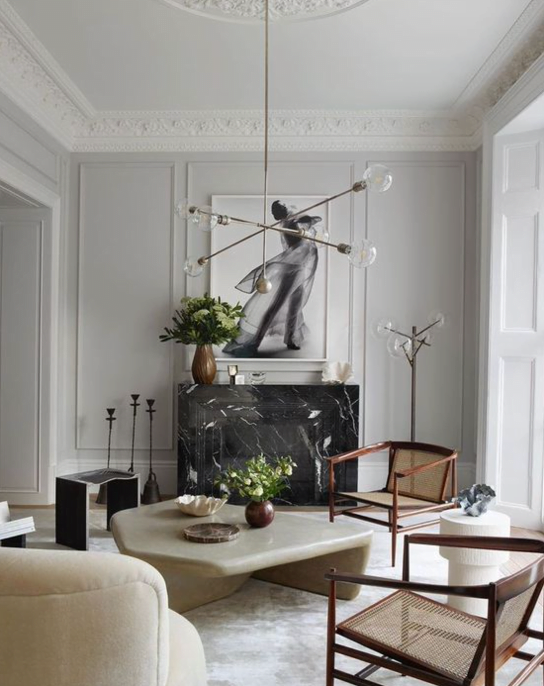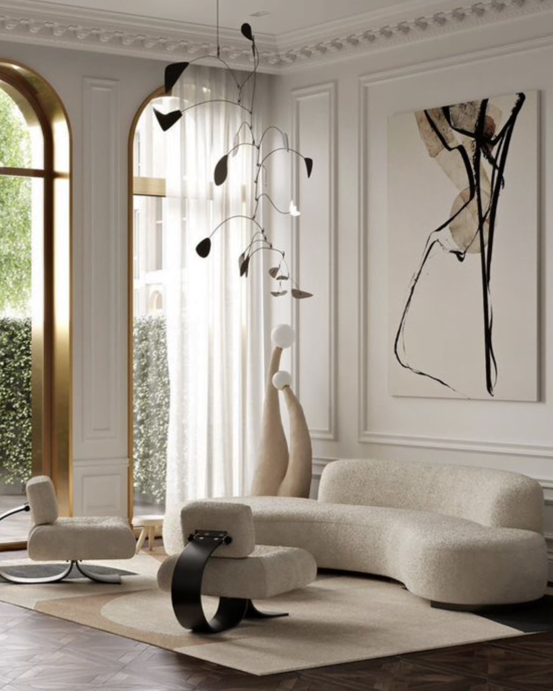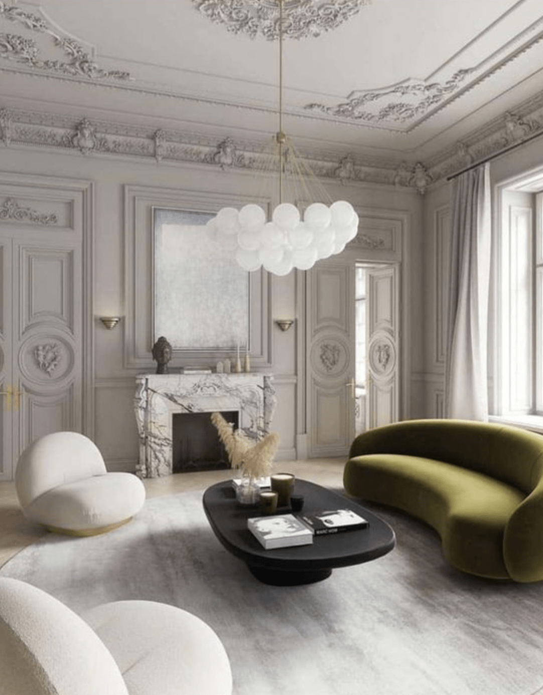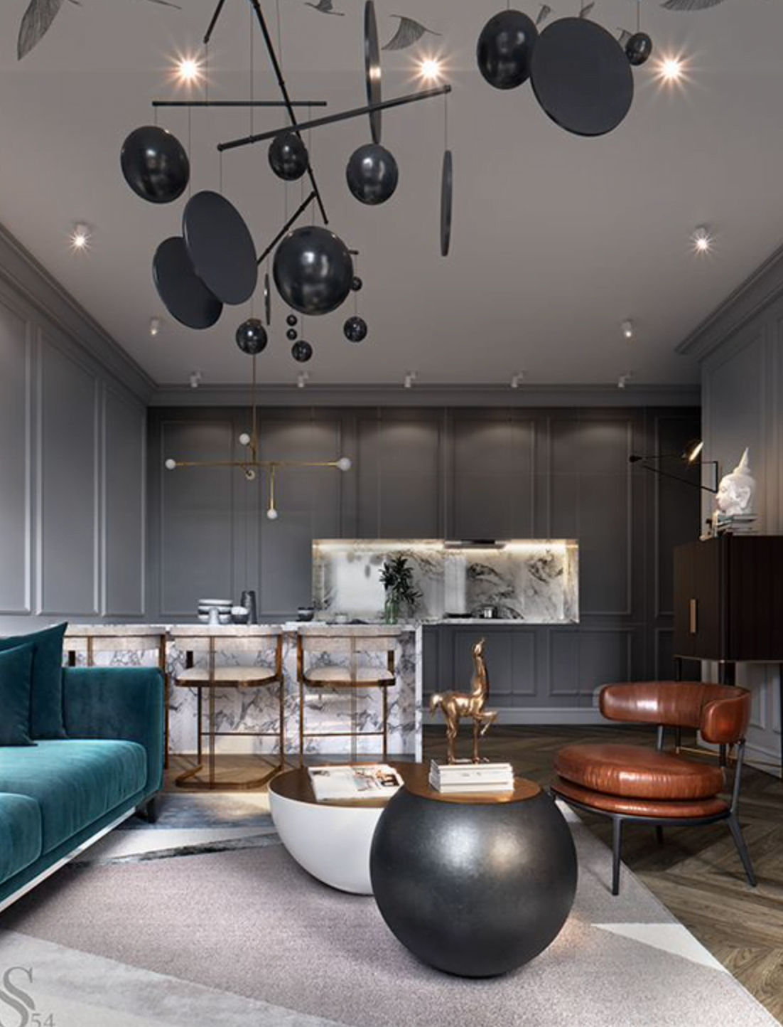 Maximalismul este trendul anului 2021 în materie de design interior, iar un couch-corner în același ton devine mai mult decât amenajarea unei zone din încăpere: devine o poveste de sine-stătătoare. Abundența în materiale, culori, imprimeuri complementează fascinant profilele arhitecturale folosite – rozeta de plafon, scafa, cornișele, brâurile decorative; împreună, toate aceste elemente creează o estetică de-a dreptul captivantă.