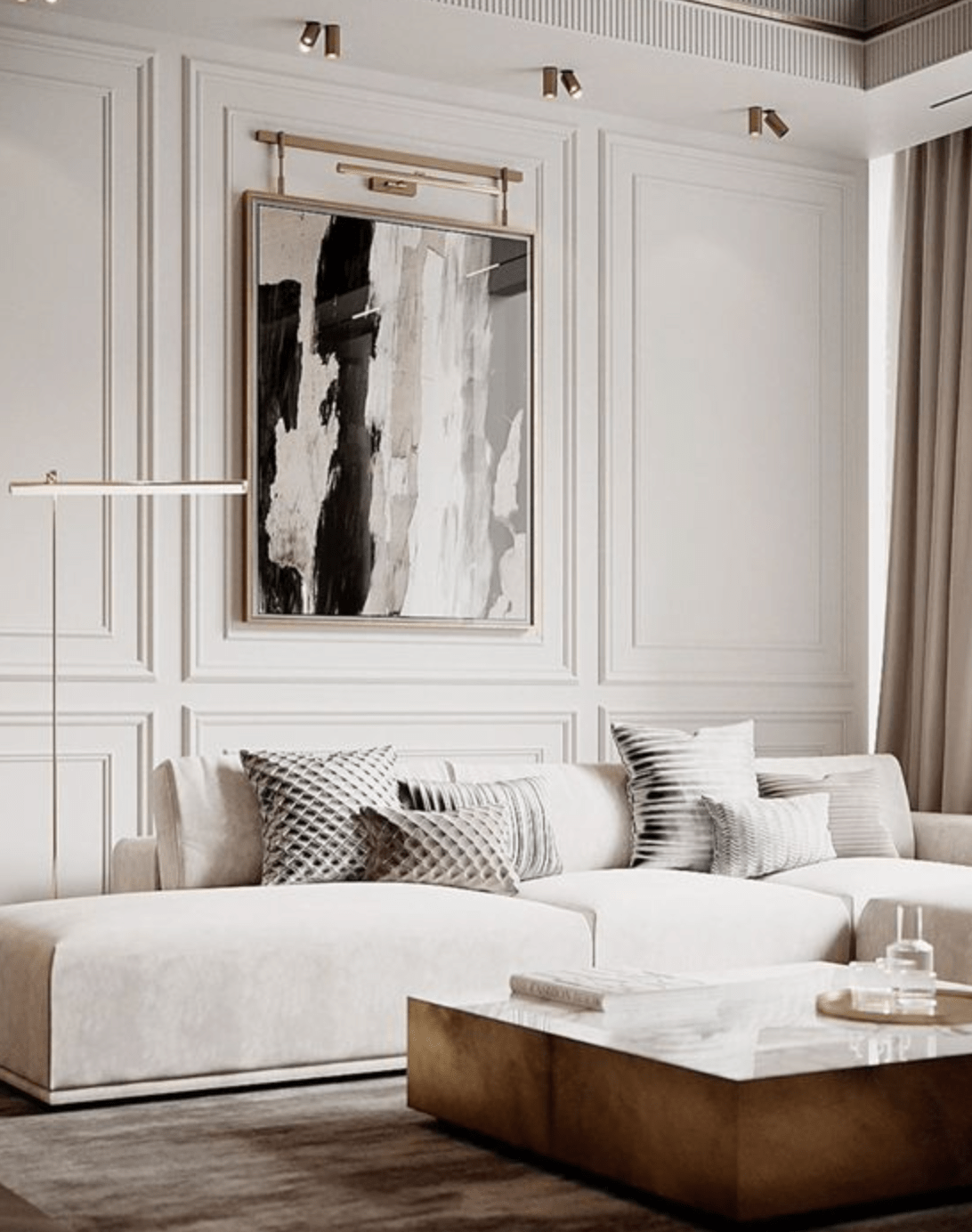 Un couch-corner modern este favoritul celor ce vor să creioneze un spațiu curat, cu linii și forme bine-definite, un spațiu ancorat în contemporan. Elegant, ușor mai rece decât în alte stiluri de amenajare, un couch-corner modern creează fascinație prin structura sa geometrică și precisă. În livingurile de mai jos accentul cade pe abundența în profile arhitecturale – brâurile, cornișele, accentele decorative transformă spațiul și creează o fuziune între clasic și modern.