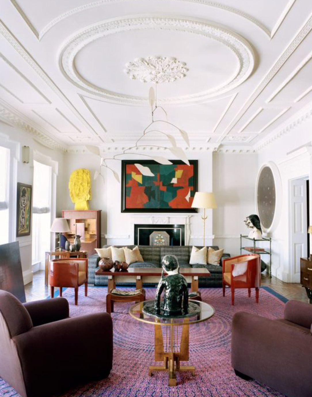 Accentul poate fi mutat către zona noastră de relaxare din living cu ajutorul unei culori vibrante. Cum vedem în livingurile de mai jos, canapeaua iese în evidență prin culoarea sa bold, fiind un adevărat centru de interes pentru ochiul uman. Profilele decorative folosite – ancadramentele, cornișe – oferă un plus de eleganță unui spațiu aparent simplist, transformându-l într-unul rafinat, unitar.