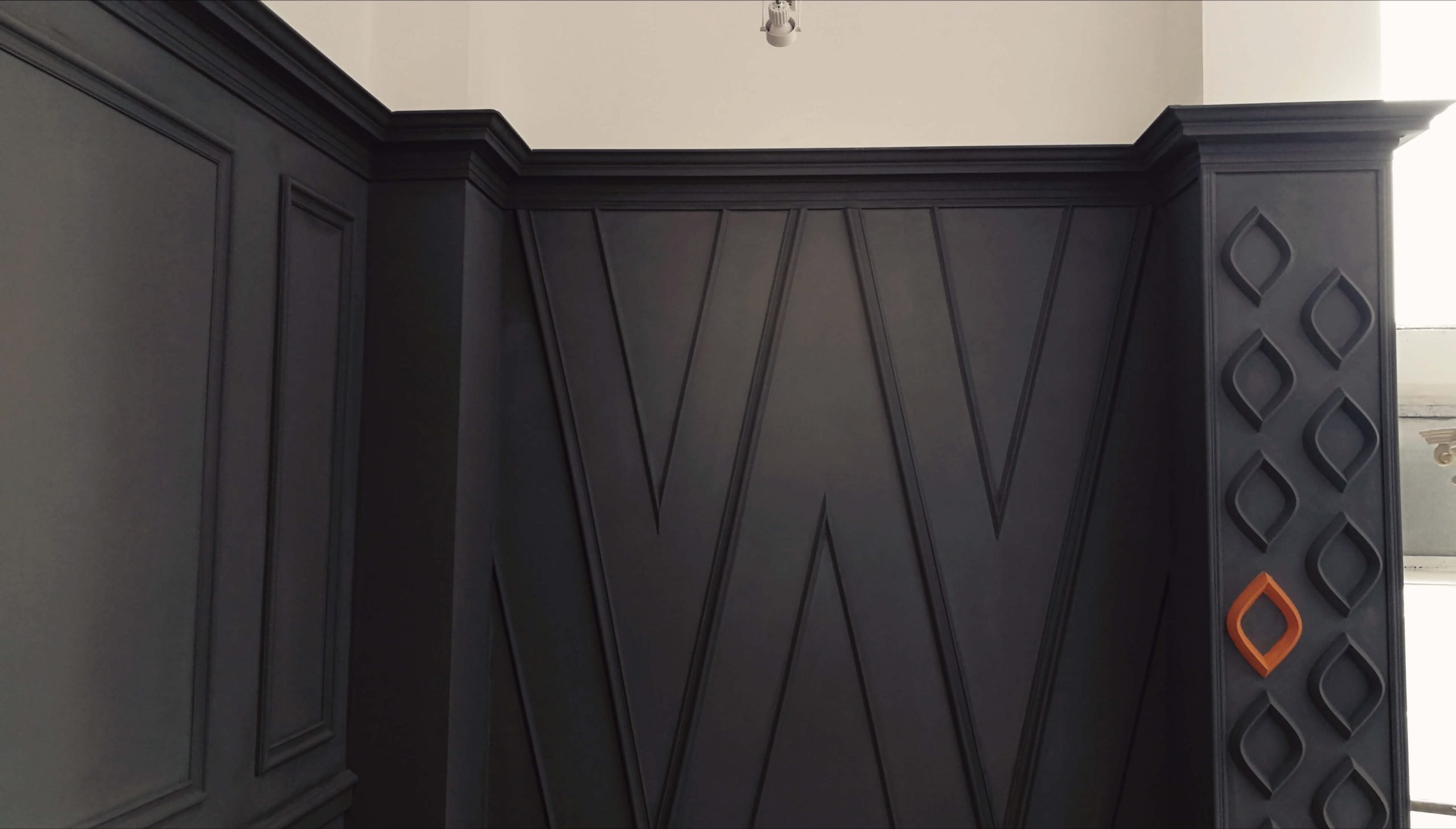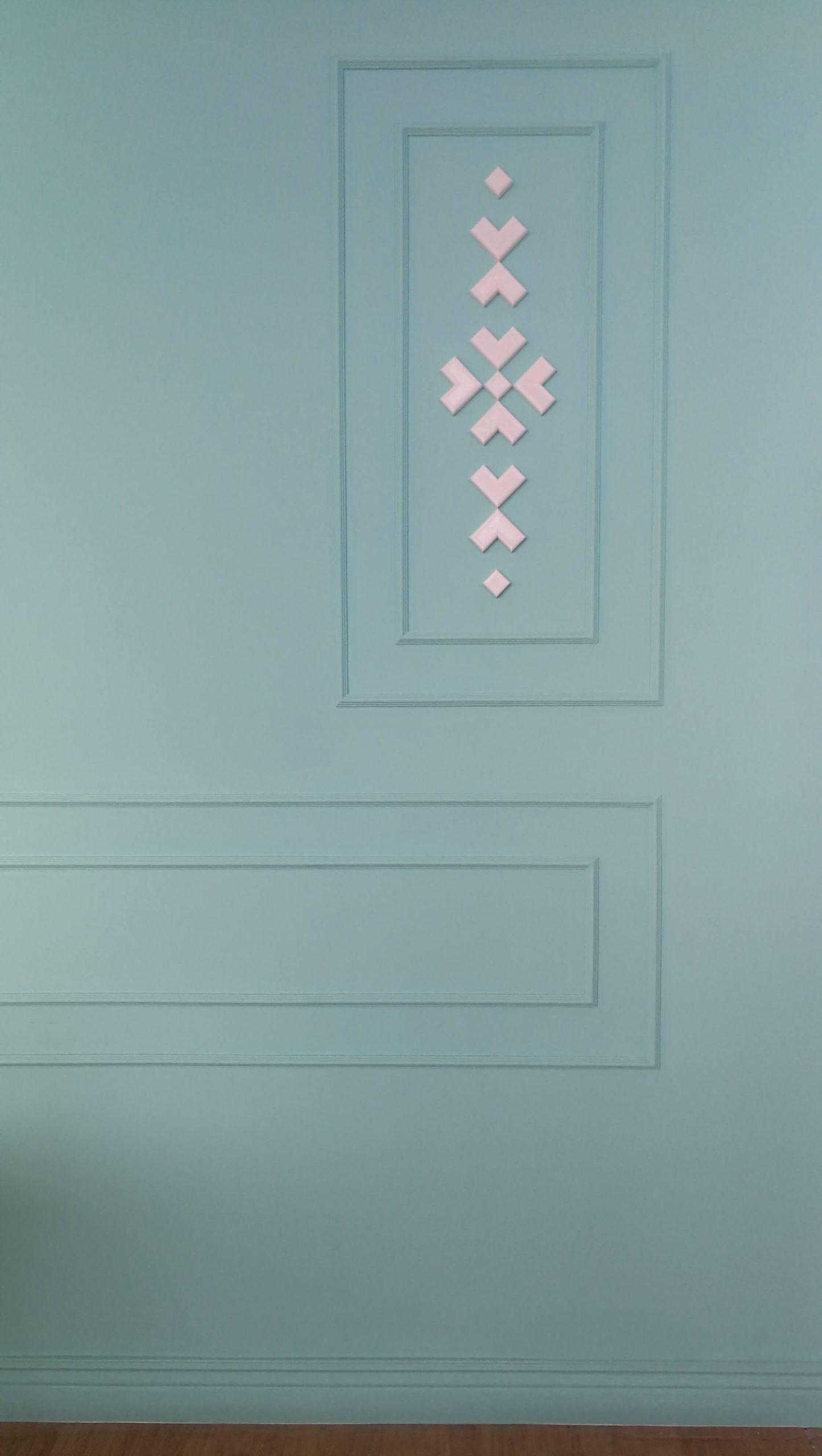 Cu o amenajare cu chenare in culoarea peretului alb nu avem cum sa fam gres. Usor de montat, usor de vopsit…efect garantat!
