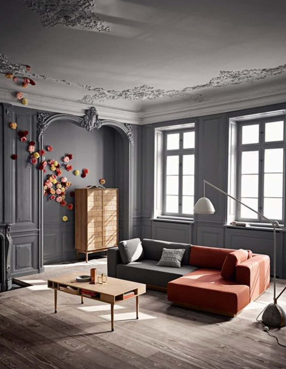 Masca de galerie este un profil decorativ care poate fi combinat cu multe altele – accente decorative, rozetă de plafon, cornișe, plinte și altele -, iar una dintre utilizările sale face referire la accentuarea unui stil anume. De exemplu, interioarele maximaliste de mai jos se bucură din abundență de profile arhitecturale care duc spațiul la un alt nivel și îl transformă într-unul mult mai creativ și inedit; fără masca de galerie și celelalte profile arhitecturale, acestor interioare le-ar fi lipsit elementul de legătură, pilonul pe care se fundamentează întreg designul.