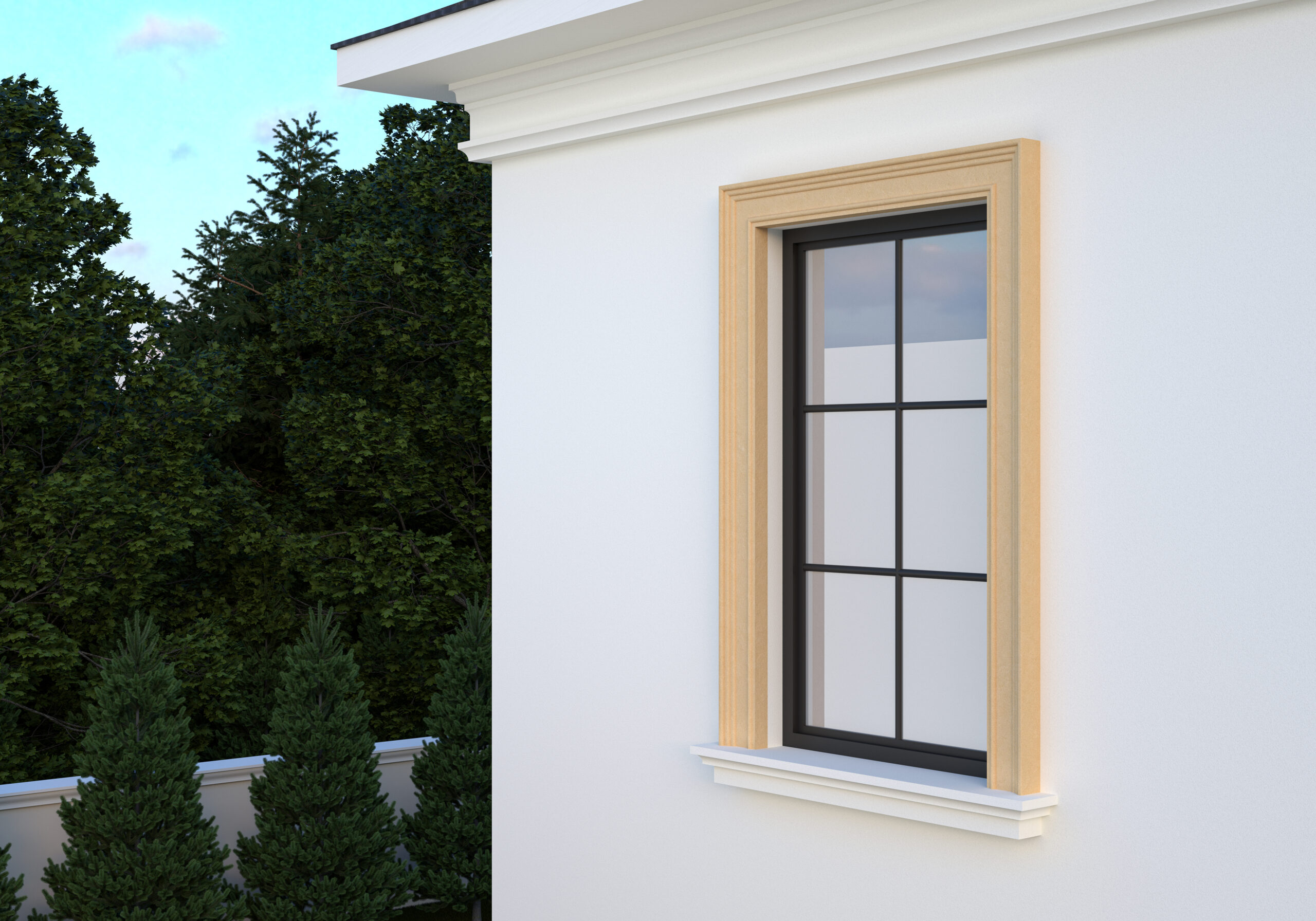 Pentru ferestrele mai mari, alegerea unor ancadramente mai late sau legarea ornamentelor ferestrelor de detaliile de margine (cum ar fi colțarele) le poate ajuta să iasă mai mult în evidență, fără a face ca ferestrele să pară grele sau disproporționate cu restul casei.