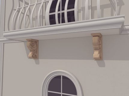 Fabricată din EPS100 de înaltă densitate și protejată cu un strat durabil de rășină minerală, consola este concepută să reziste în timp. Nu se fisurează, nu absoarbe umezeala și nu este afectată de îngheț sau radiațiile UV. Poate fi vopsită cu vopsea lavabilă de exterior, astfel încât se poate adapta oricărei palete de culori și oricărui stil arhitectural — de la modern minimalist la clasic sau rustic.