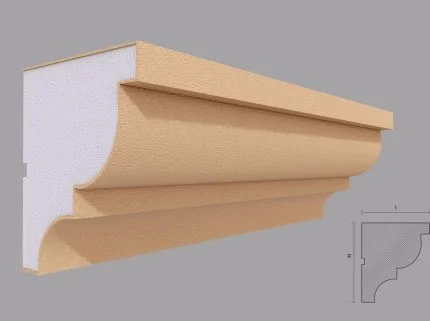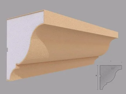Modelul FP402 este o cornișă decorativă din categoria de profile decorative pentru exterior, destinată finisării superioare a fațadelor. Cu proporții echilibrate și o linie curată, acest profil creează o delimitare estetică între perete și acoperiș, contribuind la un aspect îngrijit al clădirii.
