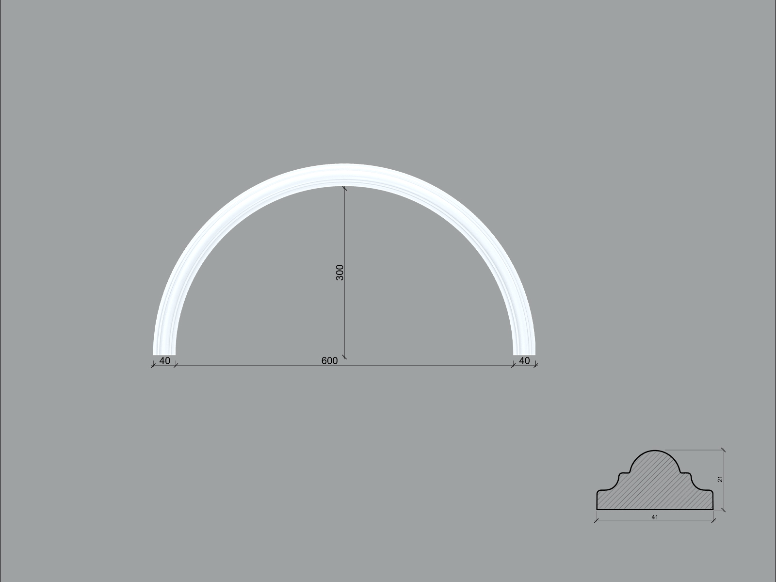 Arcada BR01 din poliuretan ARCBR01-750 de dimensiuni 375x20x750mm