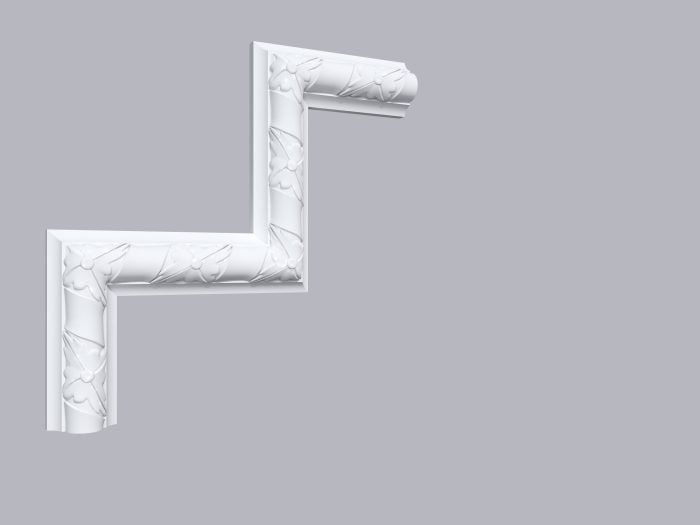 C3BR01F este colțarul dedicat brâului BR01F, proiectat pentru a menține continuitatea liniei decorative în colțurile încăperii. Dimensiunile sale de 245×20×245 mm replică exact profilul brâului, astfel încât tranziția dintre două laturi ale peretelui să fie corectă și vizibil uniformă, fără tăieturi sau îmbinări deranjante.
