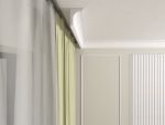 Cornișa MBC05 este o masca galerie proiectată pentru a acoperi tija perdelei și pentru a crea o terminare curată în partea superioară a ferestrei. În proiectele de interior, MBC05 se folosește adesea împreună cu bagheta de colț, pentru a continua linia de contur pe tot perimetrul camerei — astfel, fereastra nu rămâne „ruptă” vizual, iar tranziția dintre tavan și perete rămâne uniformă. Pentru amenajările în care se utilizează profile decorative, această combinație permite obținerea unei zone superioare complet integrate, fără elemente tehnice expuse.
