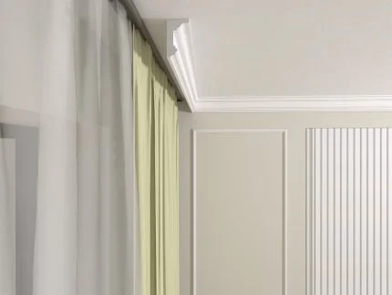 Cornișa MBC23-10 este o masca galerie realizată pentru a acoperi tija sau șina perdelei și poate fi combinată direct cu bagheta de colț BC23-10 pentru a continua conturul tavanului pe tot perimetrul. Cu dimensiuni de 100×100×2000 mm, profilul oferă o soluție practică în proiectele unde se folosesc profile decorative pentru a defini clar zona superioară a ferestrei și pentru a evita expunerea elementelor tehnice.