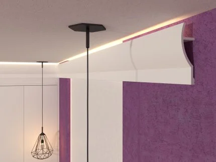 Scafele decorative pentru lumină indirectă reprezintă soluția ideală pentru obținerea unei lumini ambientale uniforme. Modelul SD09 a fost proiectat și pentru zona de perdea, asigurând o mascare elegantă a șinei. În plus, aceste profile decorative pot fi folosite și pentru mascarea țevilor care traversează încăperea, oferind o zonă superioară ordonată.
